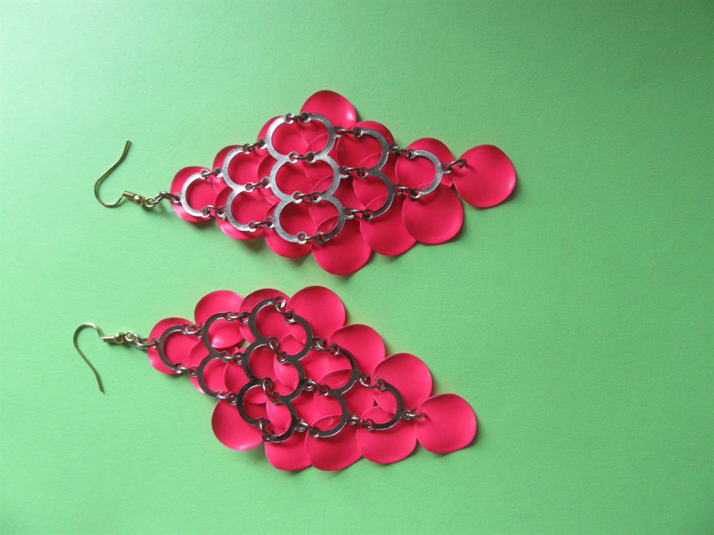 Vintage 1980's fun and flirty hot pink metal waterfall earrings. They measure 4 1/2 long including the wires. Excellent shape.
