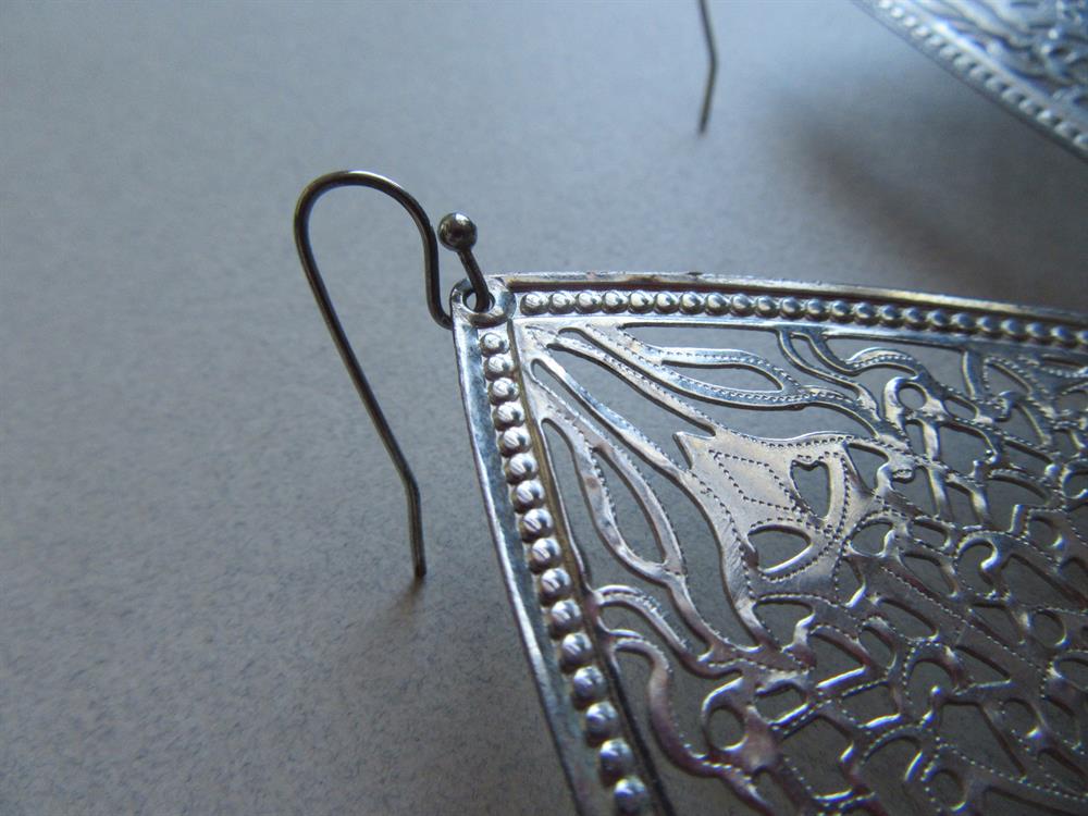 Large Silver Filigree Pierced Earrings