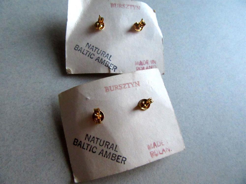 Vintage Natural Genuine Baltic Amber Pierced Earrings Warsaw Polland
