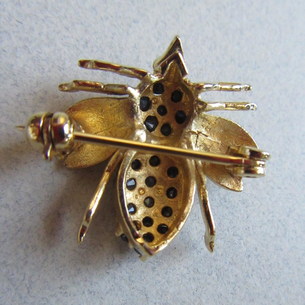 I do not know if the stones in this pin are genius sapphires are or not. It measures 1" long. No marks that I can find. Excellent shape. The eyes never had stones, they are not missing.
