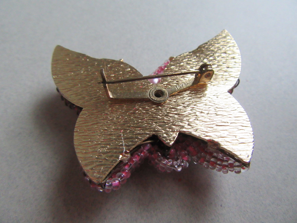 Vintage Mod Pink Glass Beaded Butterfly Pin Japan Brooch