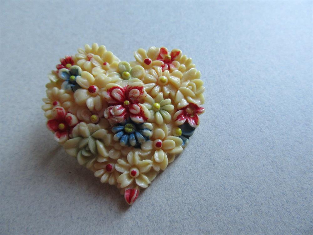 Two Sweet Celluloid Daffodil Floral and Heart Pins Occupied Japan Wedding Jewelry Accessories Something Old