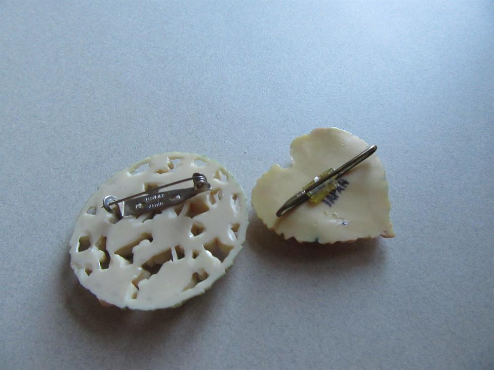 Two very sweet celluloid floral pins. One is marked Occupied Japan and the other is marked Japan.