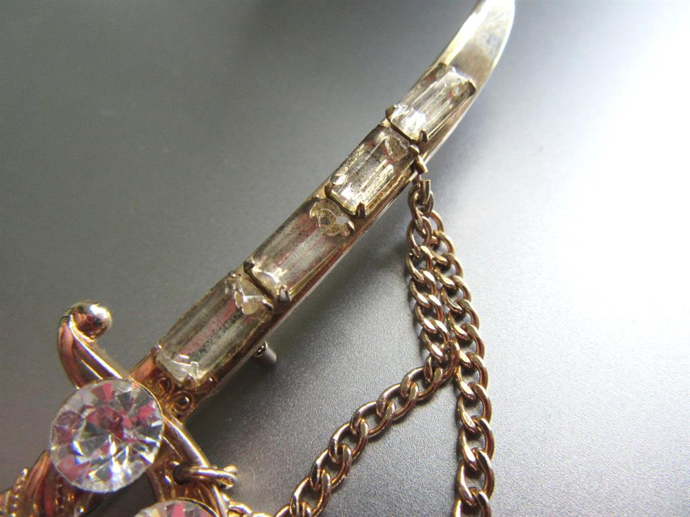 Vintage Rhinestone Sword Pin Saber Vintage Jewelry