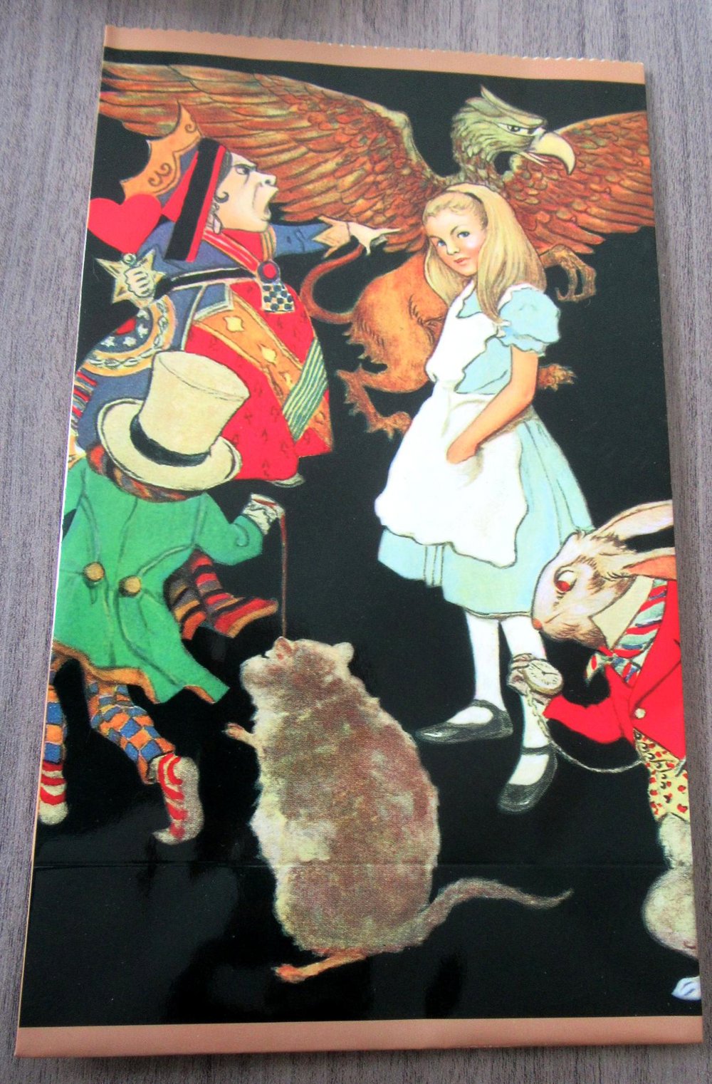 Vintage 1998 Alice in Wonderland glossy black gift bags with GORGEOUS graphics. Made by Shackman Co. NY.