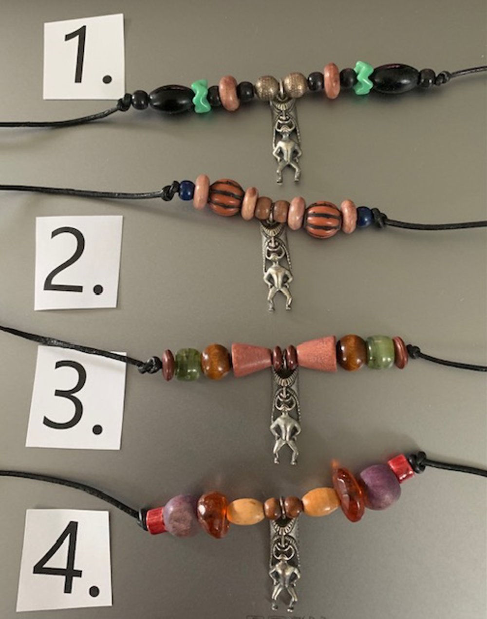 Sterling silver tiki pendant charm beaded necklaces. Your choice. Hand made. Never worn. The tiki pendant measures 1" long. These were made by my Mom back in 2000. They have black cording which you can tie at the desired length.