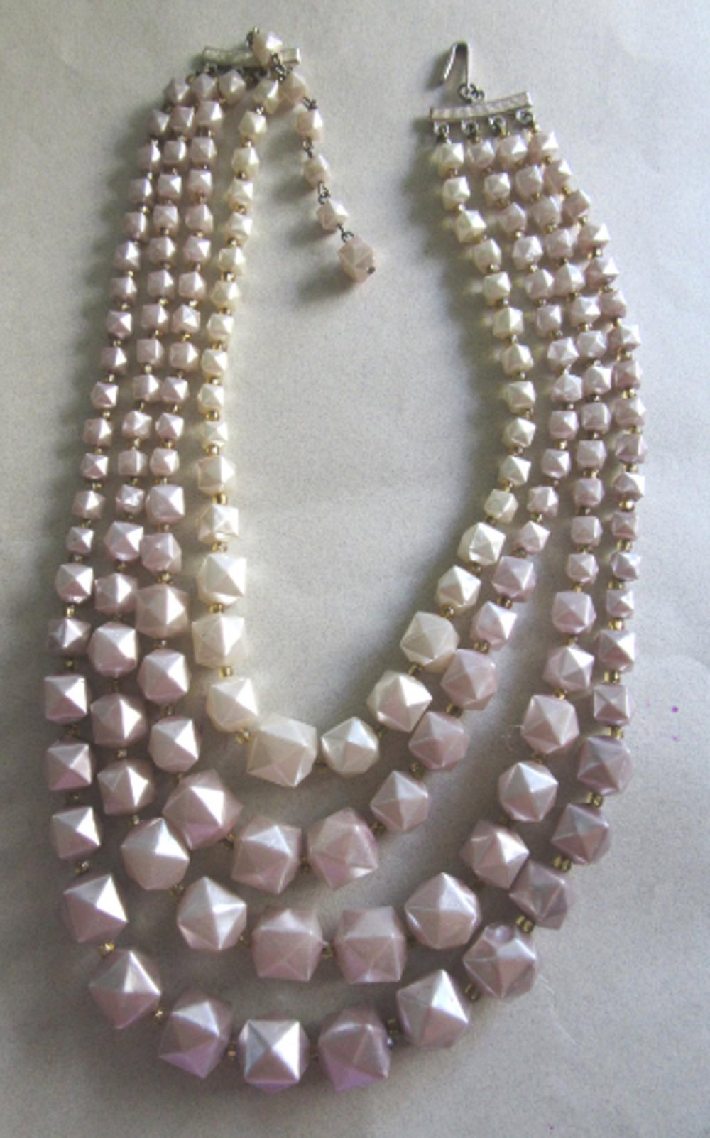Vintage 1950's mid century multi strand faceted faux pearl cube necklace.