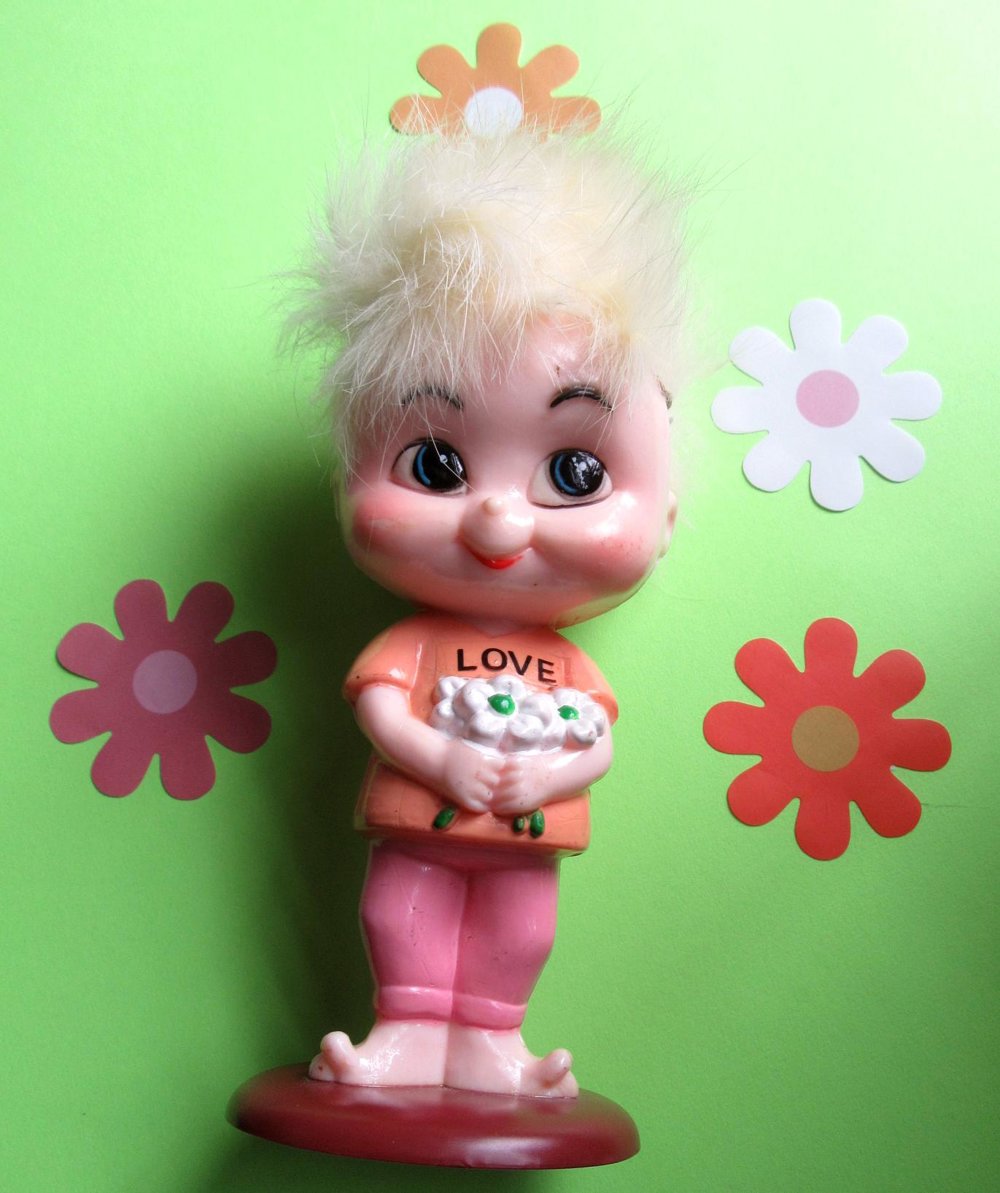1960's Mod Big Eyes Hippie Girl Love Statue Hong Kong Groovy Flower Power