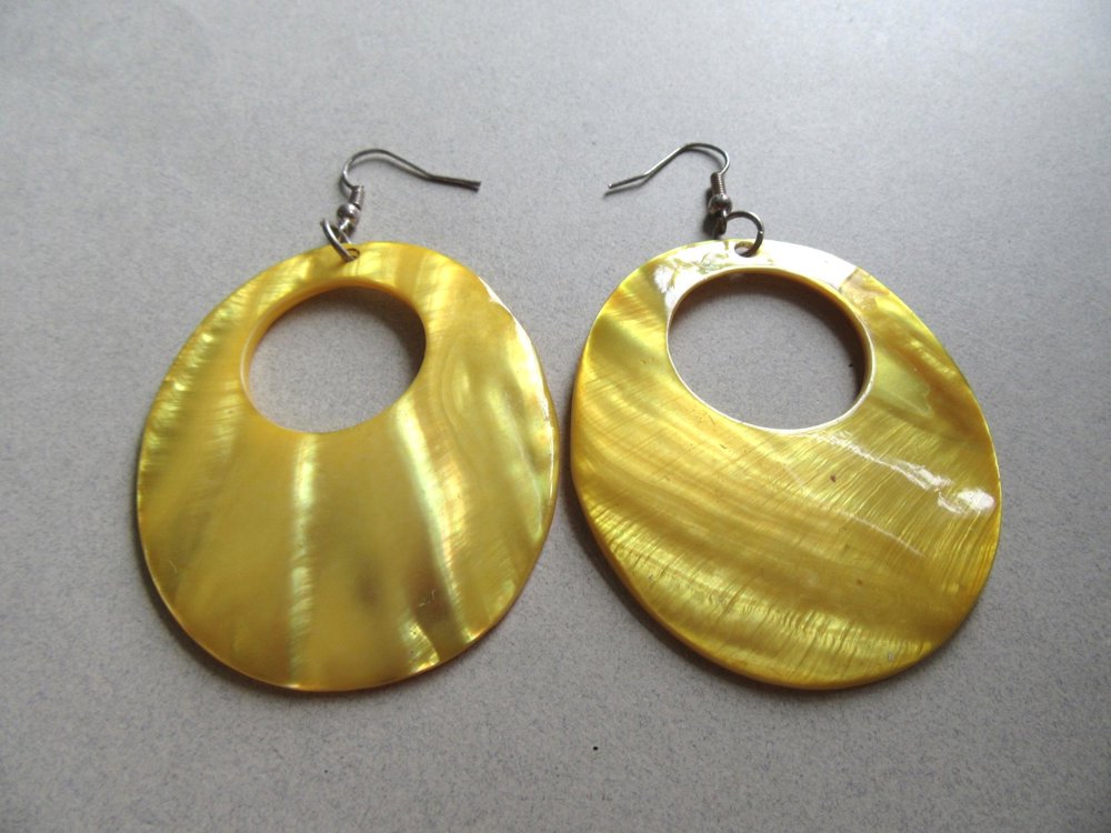 Vintage 1980's genuine shell large mod style earrings. They measure 1 3/4" across and 2 14" long.