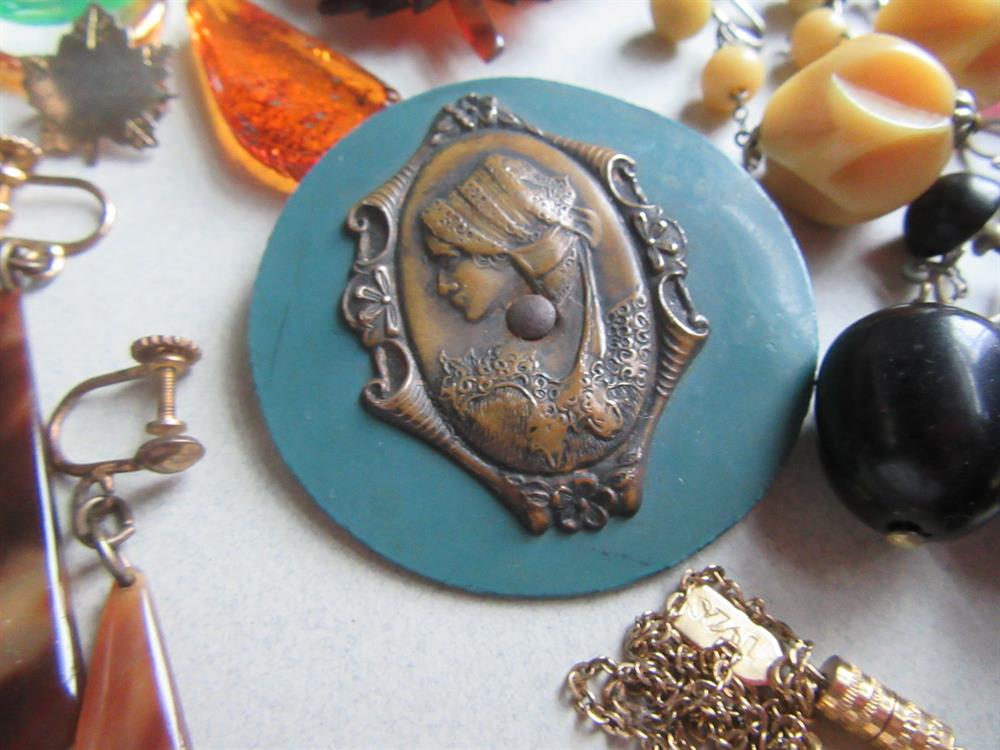 Vintage Jewelry Lot Pins Rings Celluloid Glass Beads