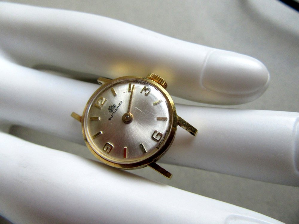 Vintage genuine 18k gold Bucherer working ladies self wind wrist watch.